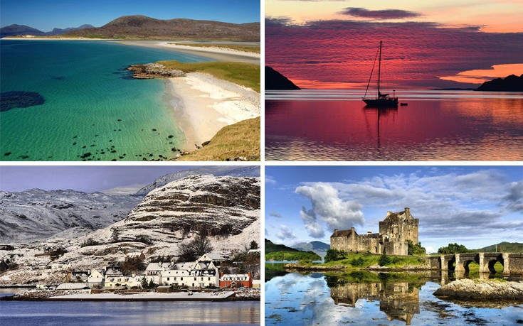 Οι φωτογραφίες που τραβήχτηκαν χειμώνα δείχνουν τις δραματικές και εντυπωσιακές αλλαγές που προκαλούν οι καιρικές συνθήκες με το χιόνι, τον πάγο και ένα σκληραγωγημένο άλογο να στέκεται πίσω από έναν πέτρινο τοίχο. Στις εντυπωσιακές φωτογραφίες κάνουν την εμφάνισή τους και μερικά άλλα ζώα όπως μια αγελάδα με.. πύρινο τρίχωμα αλλά και ένα κοπάδι προβάτων μέσα στη φύση σε μια εικόνα τραβηγμένη το 2012 και με τις χιονισμένες βουνοκορφές στο βάθος. Οι εικόνες της άνοιξης αποκαλύπτουν ένα ήρεμο τοπίο και το κλίμα που επικρατεί. Σε μια από τις φωτογραφίες φαίνεται μια εκπληκτική παραλία στις Εβρίδες και την ανθισμένη βλάστηση που αναπτύσσεται στα βουνά. Εξίσου εντυπωσιακή και η παραλία με την άμμο να παίρνει παράξενα σχήματα καθώς το κύμα πέφτει επάνω.